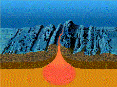 Das Magma schmilzt unter der Spreizungszone durch Druckentlastung aus dem heißen Gestein des Erdmantels aus. Die Schmelze sammelt sich in der Magmakammer unterhalb der Spreizungszone. Von dort steigt sie in regelmäßigen Schüben in Richtung Meeresboden auf und bildet an der Oberfläche eine Schicht basaltischer Kissenlava. Jener Teil der Lava, die nicht den Meeresboden erreicht, verbleibt in den zentimeterbreiten Spalten, die durch die Spreizung entstanden sind, erkaltet dort und bildet die mittlere Schicht der frischen Erdkruste. Die untere Schicht entsteht aus Material, das mehr oder weniger kontinuierlich an den Rändern der Magmakammer auskristallisiert. Das entsprechende Tiefengestein wird Gabbro genannt.