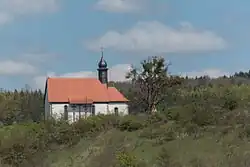 Die Kapelle wurde zwischen 1636 und 1670 gebaut. Die Saalkirche besteht aus einem Langhaus mit zwei Jochen und einem eingezogenen Chor im Osten mit geradem Schluss. Aus dem Satteldach des Langhauses erhebt sich an der Grenze zum Chor ein achteckiger, schiefergedeckter Dachreiter, der den Glockenstuhl beherbergt und mit einer Zwiebelhaube bedeckt ist. An der Südwand des Langhauses befindet sich außen unter dem vorgezogenen Satteldach ein Kruzifix, flankiert von zwei Gekreuzigten. Eine hölzerne Statue des heiligen Sebastian vom Anfang des 16. Jahrhunderts und eine um 1480 entstandenes Abendmahl aus ca. 30 cm hohen hölzernen Statuetten werden durch die Kirchenausstattung aus dem 18. Jahrhundert ergänzt. Die Orgel mit 5 Registern wurde um 1700 von einem unbekannten Orgelbauer gebaut.[1]