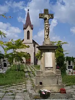 - Dorfglocke und Kreuz auf dem Dorfplatz