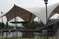 Die Seebühne ermöglicht Veranstaltungen unter (fast) freiem Himmel. Das überdachte Amphitheater ist wie eine Insel von Wasser umgeben. Fünf wie Blütenblätter angeordnete Tribünen bieten Platz für knapp 1600 Zuschauer und einen Blick auf die Naturkulisse.