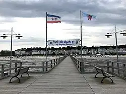Bansin, seit 1997 mit dem Titel Ostseeheilbad, gehört neben Heringsdorf und Ahlbeck zu den Dreikaiserbädern und hat im Gegensatz zu ihren Pendants eine Seebrücke ohne Land- und Brückengebäude. Auf einer Länge von 285 Metern über den ca. 50 Meter breiten Sandstrand hinweg bietet sich am Ende ein einmaliger Blick auf die Steilküste, übers Meer und die Kaiserbäderküste.[2]