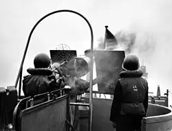 - ↑ Bojenleger markierten mit speziellen Bojen die von Minen freigeräumten Fahrrinnen und Seeabschnitte.