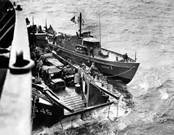 Nachdem die alliierten Zerstörer Fitch und Corry von einer deutschen Batterie von der Küste aus unter Beschuss genommen worden waren, gab Konteradmiral Morton Deyo, Befehlshaber der Western Task Force Bombardement Group, um 5:36 Uhr, zwanzig Minuten vor dem geplanten Zeitpunkt, allen Schiffen den Befehl zum Feuern. Die Schiffe der Eastern Task Force hatten schon früher, um 5:10 Uhr, zu feuern begonnen.