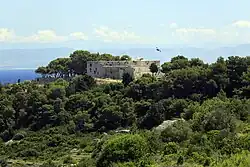 Die erste Division unter Konteradmiral Vacca näherte sich unter Beschuss den Batterien bei Komiža bis auf 1.500 Meter und eröffnete anschließend das Feuer auf die österreichischen Stellungen. Die Küstenbatterien lagen mit bis zu 250 Meter über dem Meeresspiegel jedoch zu hoch für die italienischen Geschütze. Folglich entschied sich Vacca nach einigen Stunden nutzlosen Beschusses, nach Manego zu fahren und Konteradmiral Albini zu unterstützen.[16] Albini, der den Befehl erhalten hatte, die Batterien von Nadpostranje zu zerstören und Truppen in der Bucht von Rukavac anzulanden, erreichte gegen 11:15 Uhr seine Position. Kurz darauf eröffneten die österreichischen Kanonen das Feuer auf die sich nähernden Italiener. Albini sah sich mit dem gleichen Problem wie Konteradmiral Vacca konfrontiert und entschied sich ebenfalls, den Beschuss einzustellen. Anschließend entsandte Albini die Korvette San Giovanni nach San Giorgio, um Persano um weitere Befehle zu bitten. Nachdem Vacca Manego gegen 14:00 Uhr erreicht hatte, informierte ihn Albini über die Situation, worauf Vacca beschloss, weiter nach San Giorgio zu fahren.