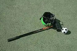 Die Maße des Schlägers sind auf eine Länge von höchstens 106,68 cm und einen Stieldurchmesser (Schaft) von 2,54 cm beschränkt. Der Schlagkopf am Ende darf einen Durchmesser von 7,62 cm und eine Länge von 22,86 cm nicht überschreiten. Er darf nicht mehr als 283,50 Gramm wiegen. Der Schlägerkopf wird mit einem geschlossen-zelligen Schaum (6 mm Stärke) gepolstert, um Verletzungen der Spieler zu vermeiden.
