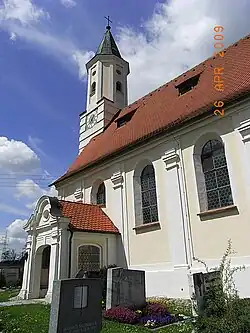 In Volkratshofen befindet sich eine kühl wirkende reformierte Kirche.