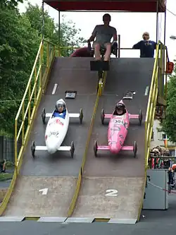 Die Rennstrecken sind in der Regel zwischen 250 und 500 Meter lang und weisen ein leichtes Gefälle auf, so dass von der Beschaffenheit an keiner Stelle eine Höchstgeschwindigkeit von 60 km/h erzielt werden kann. Die Fahrzeuge starten von einer Startrampe. Ist bei Nässe der gefahrlose Rennverlauf nicht mehr gewährleistet, muss das Rennen abgebrochen werden. Der Sieger wird aus der kürzesten Gesamtzeit aller Läufe ermittelt.