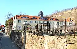 Das zur Wohnanlage umgenutzte Produktionsgebäude steht mit der „bemerkenswerte[n] Kelleranlage“ sowie der Einfriedung/Stützmauer und dem südlich davor gelegenen Weinberg unter Denkmalschutz.[2] Dieser Weingarten gilt als Werk der Garten- und Landschaftsgestaltung.[2] Gebäude und Weingarten liegen im Denkmalschutzgebiet Historische Weinberglandschaft Radebeul.