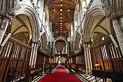 Die Einrichtung gleicht auf Grund des übernommenen Stils der Kathedrale von Durham. Reichlich verzierte und ausgestaltete Kapitelle sind in der ganzen Kirche zu finden.