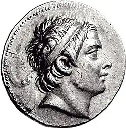 - ↑ Polybios 4,48, 7–9; 5,40,6; Appian, Syriaca 66 (348); Justin 29,1,3; Eusebius, Chronik 1 (Sp. 253, Schöne (Eusebius Chronicon, Bd. 1, Berlin 1875)) = Porphyrios FGrH 260 F32,9; Hieronymus, in Danielem 3,10,11 = FGrH 260 F44.