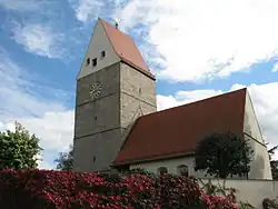 1483 bis 1485 wurde laut Bauinschrift der spätgotische viergeschossige, wegen der Höhenlage von Selingstadt weithin sichtbare Sattelturm aus Sandsteinquadern erbaut, in dem sich der Chor mit einem Sterngewölbe befindet. Circa 1700 wurde das flachgedeckte Langhaus von 13,40 × 8,60 Metern mit 14-Nothelfer-, Maria Hilf- und St. Georg-Altar neu gebaut. Die Kirche sollte 1804 abgebrochen werden, wurde aber dann gegen Übernahme der staatlichen Drittelbaulast der Gemeinde überlassen. 1807 wurde der Friedhof außerhalb des Ortes verlegt. 1834 kam aber der Friedhof um die Kirche wieder zur Nutzung. 1861 wurde die Statue des Kirchenpatrons neu beschafft, 1884 eine neue Sakristei an der Südseite des Chores errichtet und 1885 zum ersten Mal eine Orgel (6 Register) eingebaut. 1937 hingen im Turm drei Glocken aus dem späten 15. oder frühen 16. Jahrhundert.[31] 2000 wurde im Langhaus ein gotisches Wandmalereifragment freigelegt, das die bisherige Annahme von der Bauzeit des Langhauses widerlegt.[32]