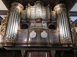 Noch von Java aus setzte Inggersen die Schenkung einer Orgel für die St. Laurentius-Kirche seiner Heimatgemeinde Langenhorn zum Gedächtnis an Adriana ins Werk. Schon 1755 beauftragte er den „Königlich Dänischen und Groß Fürstl. Schleswig-Holsteinischen privilegierten Orgelmachers“ Johann Daniel Busch mit dem Entwurf eines Disposition. Ende 1756 bevollmächtigte er den Langenhorner Pastor und die Kirchenvorsteher, den von ihm vorgegebenen Plan auszuführen.[19] Die Umsetzung erfolgte erst 1759. Am 19. Juli dieses Jahres schloss Inggersen einen Vertrag mit Busch, dass dieser die Orgel entsprechend dem vorliegenden Plan innerhalb von zwei Jahren fertigzustellen habe und dafür „500 Marcklübsch Grob Dänisch Cour:“ erhalten solle.[20] Für den Bau dieser für eine Dorfkirche überdimensionierten Orgel musste der mittelalterliche Chor der Kirche abgebrochen und die Kirche auf ganzer Breite nach Osten erweitert werden.[21] 1761 war die Orgel fertiggestellt. Sie befindet sich auf der nördlichen Seitenempore. Auf ihr finden noch heute Konzerte statt. An der Orgelbrüstung erinnert eine Lyk Klagt (Leichenklage) an Inggersens Frau Adriana.[22] Die Marmorreliefs schuf J. Luraghi aus Den Haag.[23] 1766 erhielt die Kirche weitere 1000 Mk mit der Auflage damit die Orgel mit „mein Wapen, und Poetischen versen, alles in Marmor, gravirt“ solange instand zu halten, wie die Kirche stehen würde.[24] Außerdem kaufte er sich ein Gestühl, sollte er einmal dem Gottesdienst in Langenhorn beiwohnen.