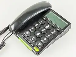 Ein Seniorentelefon ist ein Telefon, das speziell für die physischen Bedürfnisse älterer oder körperlich beeinträchtigter Menschen ausgelegt ist.[1] Dabei verzichten die Hersteller bewusst auf eine reichhaltige Funktionsvielfalt, um die Bedienbarkeit der Geräte möglichst einfach und intuitiv zu halten.[2] Häufig werden Seniorentelefone um eine sogenannte Notfall-Funktion erweitert, die es dem Besitzer ermöglicht, mit nur einem Tastendruck einen Notruf an einen zuvor definierten Rettungsdienst abzusetzen.[3]