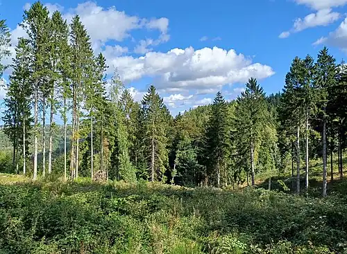 Das kleine Naturschutzgebiet Senkelbachquellen liegt im Gemeindegebiet von Simmerath, westlich von Schmidt und südlich von Vossenack.