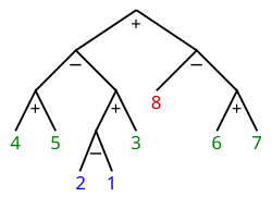 Eine solche Klammerung kann in einen Separationsbaum umgewandelt werden, indem jeweils zwei nebeneinander stehende Zahlen oder Klammerblöcke einen inneren Knoten im Baum bilden. Ist die Schachtelungstiefe gerade, dann handelt es sich um einen positiven Knoten, ist sie ungerade, um einen negativen Knoten. Drei oder mehr nebeneinander stehende Zahlen oder Klammerblöcke können dabei in beliebiger Reihenfolge in Knoten gleichen Vorzeichens umgewandelt werden.