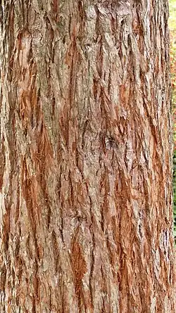 Die faserig-schwammige Borke ist bei älteren Bäumen ungewöhnlich dick (etwa 30 bis 75 cm), recht weich sowie tanninhaltig und harzfrei. Sie ist orangebraun bis dunkel rotbraun und tief längsrissig. Eine spezielle Funktion der Borke ist der Schutz bei Waldbränden, wie sie im über tausendjährigen Leben mancher Exemplare des Öfteren vorkommen; der Baum ist ein Pyrophyt.