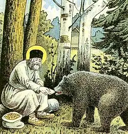 Der Heilige Seraphim von Sarow (russisch Серафи́м Саро́вский, wiss. Transliteration Serafim Sarovskij; * 19.jul. / 30. Juli 1759greg. in Kursk; † 2.jul. / 14. Januar 1833greg. in Sarow), bürgerlich Prochor Moschnin (russisch: Прохор Мошнин), war einer der bekanntesten russischen Mönche und Mystiker der Orthodoxen Kirche. Man bezeichnet ihn als den größten Starez (staritsa) des 19. Jahrhunderts. Seraphim versuchte, die klösterlichen Lehren der Kontemplation und der Selbstverneinung den Laien zu vermitteln, und lehrte, dass das Ziel eines christlichen Lebens die Erlangung des Heiligen Geistes sei.