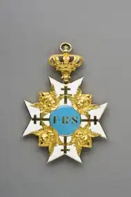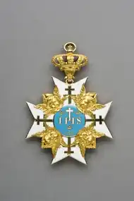 Der Königliche Seraphinenorden (schwedisch Kungliga Serafimerorden) ist als Staats- oder Ritterorden der höchste Orden des Königreiches Schweden sowie der Hausorden der Königlichen Familie. Erbberechtigte Prinzen und Prinzessinnen erhalten ihn bei ihrer Geburt. Im Weiteren kann er in erster Linie ausländischen Staatsoberhäuptern und ihnen gleichgestellten Personen verliehen werden.[1] Großmeister des Ordens ist der König von Schweden. Der Orden, der nur eine einzige Klasse (riddare „Ritter“) kennt, wird auch „das blaue Band“ (Det blå bandet) genannt.