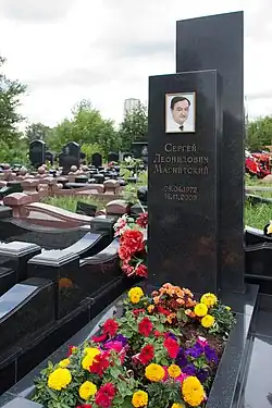 Insgesamt blieb Magnitski 358 Tage in Haft und starb schließlich am 16. November 2009 in einer Isolationszelle,[15] während Sanitäter nicht vorgelassen wurden.[4] Er starb damit sieben Tage vor Ablauf der einjährigen Untersuchungshaft (nach russischem Recht ist ein Jahr die maximale Zeit, in der ein Häftling ohne Anklage inhaftiert bleiben kann; danach muss er entweder freigelassen oder angeklagt werden). Es wird angenommen, dass er von den Wärtern zu Tode geprügelt wurde.[16] Nach seinem Tod wurde von den Behörden Pankreatitis als offizielle Todesursache genannt.[17] Später wurde dies korrigiert und als Ursache „Herzinfarkt“ angegeben. Die Durchführung einer Obduktion lehnten die russischen Vollzugsbehörden ab.