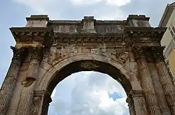 Die Familie der Sergi führte sich auf eine bedeutende römische Familie zurück, die in Istrien seit dem ersten vorchristlichen Jahrhundert nachweisbar ist. Damit wurde ein direkter Zusammenhang mit dem Triumphbogen hergestellt, der in Pula nach 30 v. Chr. in Erinnerung an Lucius Sergius Lepidus von seiner Ehefrau („Salvia Postuma des Sergius Gemahlin von ihrem Vermögen“[1]), also nicht vom Staat, errichtet worden war, einem Tribun der Legio XXIX[2], die nach der Schlacht bei Actium aufgelöst worden war.