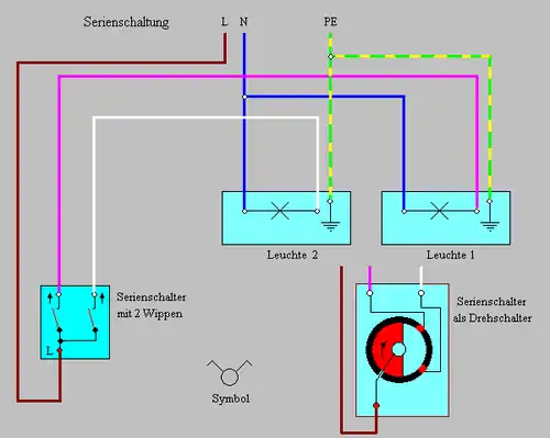 Der Begriff Serienschaltung stammt aus der Zeit, in der Schalter nur in Form von Drehschaltern hergestellt wurden.