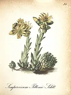 - ↑ a b c Michael Koltzenburg: Sempervivum. In: Schmeil-Fitschen: Die Flora Deutschlands und angrenzender Länder. 98. Auflage. Verlag Quelle & Meyer, Wiebelsheim 2024. ISBN 978-3-494-01943-7. S. 364.