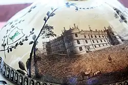 Einzelne Teile des Service wurden mit Ansichten von britischen Industriebauten dekoriert.[5][9] Auf anderen sind Ansichten von Gärten und Parks im neuen Stil des englischen Landschaftsgartens zu sehen, für den sich Katharina II. sehr interessierte. So wurden in dem Service zum Beispiel Ansichten von 17 Gärten des englischen Landschaftsarchitekten Capability Brown gezeigt.[10] Zahlreiche der abgebildeten Wohnsitze befanden sich im Besitz guter Wedgwoodkunden, für die die Vorstellung, dass Ansichten ihrer Landhäuser und Parks bis an den Russischen Kaiserhof gelangten, unzweifelhaft sehr schmeichelhaft gewesen sein dürfte.[6] Auch Josiah Wedgwoods eigener Wohnsitz, Etruria Hall, wurde auf einer der Servierplatten des Service abgebildet.[8]