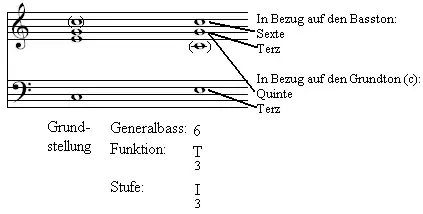Die Sichtweise, wonach ein Sextakkord die (erste) Umkehrung eines Dreiklangs ist, hat sich erst allmählich im Laufe des 18. Jahrhunderts etabliert. Demnach ist die Sext über dem Basston der Akkordgrundton, und der Basston selbst der Terzton „des Akkords“, d. h. die Terz über dem Grundton.