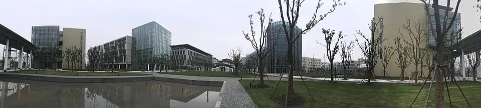 Der Campus hat eine Fläche von 0,6 Quadratkilometern und eine Nutzfläche von mehr als 700.000 Quadratmetern. Die Baukosten wurden mit 4,169 Milliarden CNY veranschlagt. Der Campus wurde 2016 fertiggestellt.[14][15]