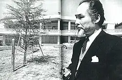 - ↑ Der Plan sah über einer Wasserfläche einen quaderförmigen Gebäudeblock auf einer Säule vor.