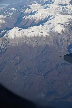 | Tiefblick nach Bajram Curr und Gipfelumgebung | ||