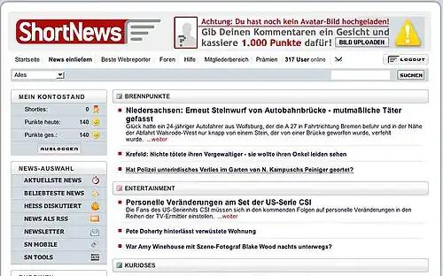 - ↑ Wie geht es weiter mit ShortNews? ( vom 9. April 2008 im Internet Archive)