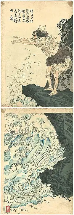 - ↑ Shunkan blickt verzweifelt hinterher, wie ein Amnestierter (im unteren Bild links oben) im Boot zurückkehren kann.