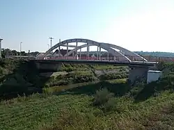 Beginn des Sió-Kanals mit Schleuse (links) | |