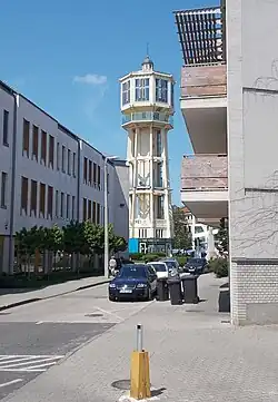Blick vom Wasserturm in Richtung Bahnhof und See -