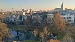 Der Sicherheitshafen wurde endgültig aufgegeben, seitdem seit den 1850er Jahren der Ausbau des Rheinauhafens vorangetrieben wurde, der 1898 abgeschlossen wurde. Während der Stadterweiterung in den 1890er Jahren wurde das Hafenbecken 1895 und 1896 verfüllt[15] und in eine Parkanlage umgewandelt, die zunächst den Namen „Deutscher Ring“ trug. Es ist die größte Parkfläche entlang der Kölner Ringe. Im Zuge der Verfüllung wurde im alten Hafenbecken außerdem ein Abwassersystem für die Alt- und Neustadt gebaut. Der sogenannte Kronleuchtersaal Ecke Theodor-Heuss-Ring und Clever Straße, ein Teil dieses Abwassersystems, steht seit 2004 unter Denkmalschutz. Weiterhin wurde um 1900 in der jetzt nutzlosen Hafeneinfahrt eine 7,50 m hohe Kaponniere errichtet,[16] deren Kellergeschosse bis 11 m in die Tiefe reichten.[17] Nach einem Namenswettbewerb wurde diese Kaponniere als Bastei bezeichnet. In den 1920er Jahren wurde nach einem Entwurf von Wilhelm Riphahn auf dem Fundament der Kaponniere ein Aussichtsrestaurant im expressionistischen Stil errichtet.[18]