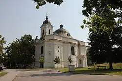 An den Kuppelpfeilern zuseiten des Choreingangs fanden Kreuzaltar und Kanzel Aufstellung. Die Altarfiguren stammen von dem Passauer Bildhauer Giovanni Battista d’Allio, die Fresken schuf der Prager Maler Wenzel Lorenz Reiner. 1760–1761 erhielt die Kirche eine Orgel mit zweigeteiltem Prospekt sowie einem Rückpositiv mit rückwärtig angebautem Spieltisch aus der Werkstatt von František Fialka in Bechyně.[1]