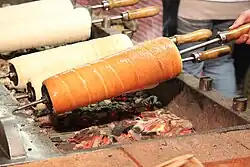 - Aus der ungarischen Küche stammen in der siebenbürgischen Küche beeinflusst das weit verbreitete Gulasch in all seinen Varianten sowie die gefüllten Paprika. Von den Süßwaren sind zu erwähnen die Dobostorte, der Lángos, die Grammelpogatscherl und der Palatschinken. Der Baumstriezel stammt vermutlich aus dem ungarisch geprägten Szeklerland, wird traditionell aber auch von den Siebenbürger Sachsen verspeist.