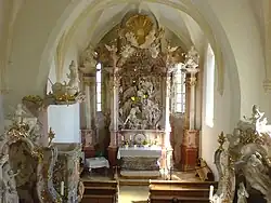 Im Jahre 1758 fertigte Johann Baptist Modler den neuen Hochaltar für die Kirche. Seitenaltäre und Kanzel folgten 1763/1764. Der barocke Altar wurde mit einfachsten Mitteln (Kisten, Tuffstein, Muscheln) zur Illusion einer Grotte, in die farbiges Licht dringt, umgestaltet. In diesem illusionären Raum träumen die sieben Jünglinge des Künstlers Modler, der auch die übrige Einrichtung entworfen hat. Mit dieser Schöpfung gehört die Rotthofer Einrichtung zu den besten der volkstümlichen Rokokokunst in Bayern.