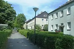 Die Siedlung Hessische Straße im Dortmunder Stadtteil Eving wurde von 1949 bis 1951 durch die Bundesrepublik Deutschland, vertreten durch das staatliche Finanzbauamt Dortmund, für „Heimatlose Ausländer“ errichtet. Wegen des zeitlichen Zusammenfalls mit dem Koreakrieg wird sie umgangssprachlich auch Koreasiedlung oder Klein-Korea genannt. Als Finanzierung werden in verschiedenen Quellen Gelder aus dem Marshallplan, dem Bundeshaushalt und des Hohen Flüchtlingskommissars der Vereinten Nationen genannt, was aber kein Widerspruch sein muss. In den baugleichen 28 Gebäuden mit 56 Eingängen befinden sich nach umfangreicher Modernisierung in den 1980er Jahren 274 Wohnungen. Als das Ministerium der Finanzen, vertreten durch das Bundesvermögensamt Hagen und die Oberfinanzdirektion Münster, die Siedlung 1988 meistbietend zum Kauf ausschrieb, gelang es den Bewohnern und sie unterstützende Verbände und Politiker, durch Thematisierung der besonderen moralischen Verpflichtung und der immer noch lebendigen polnisch-katholischen Kultur den Ankauf durch die landesbeteiligte Ruhr-Lippe Wohnungsgesellschaft, heute LEG NRW, zu erreichen. Seit 1961 werden die Wohnungen frei vermietet. Heute wohnen darin auch Familienangehörige mit einem deutschen Pass und Deutsche ohne den besonderen geschichtlichen Hintergrund. Im Jahr 2001, dem 50-jährigen Bestehen, waren von den 370 Bewohnern noch 60 Prozent polnischer Abstammung.[1]