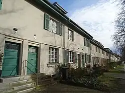 Die Bauten sind überwiegend zwei-, teilweise auch dreigeschossig.[2] Es gibt fünf Typen von Häusern. An der Roedern- und Fontanestraße stehen Vierfamilienhäuser nach Entwürfen von Hamacher. In der Zeppelinstraße wurden Einfamilienhäuser für Beamte und Facharbeiter der AEG gebaut. Sie stammen überwiegend ebenfalls von Hamacher; frühere Werke nennen noch Peter Behrens als Urheber. Direkt auf Behrens gehen nur die Bauten in der Mitte der Straßenzeile am Durchgang zur Hofanlage zurück.[1] Hans Spitzner entwarf zwei langgestreckte Häuserzeilen entlang der Straße An der Wuhlheide sowie die beiden dreigeschossigen Eckbauten an der Zeppelinstraße. Die Fassaden der Gebäude sind „mit durchlaufenden Gesimsbändern proportioniert und durch erkerartig vorgezogene Außenachsen und Hauseingänge sowie Dachgauben gegliedert“.[3]