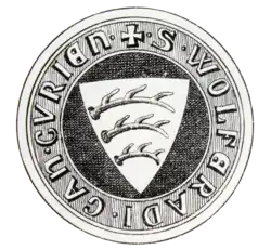 Graf Wölflin von Veringen | „S • COMITIS • WOELFLIN • DE • VERINGE •“ | Graf Wölflin von Veringen aus dem Jahre 1391. Das Siegel Nr. 14 zeigt, dass Wölflin den Namen von Veringen sich erst später beigelegt hat. |