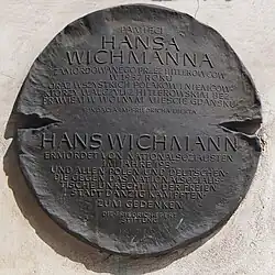 Straßenseitig ist eine Gedenktafel für den im Mai 1937 ermordeten SPD-Politiker Hans Wichmann angebracht.