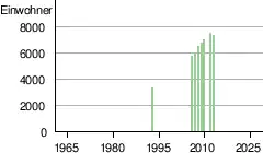Nach einer Berechnung für das Jahr 2013 leben dort etwa 7219 Einwohner, das Ergebnis der letzten veröffentlichten Volkszählung von 1993 betrug 3240.[1]