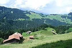 Siedlung Brand, oberhalb von Sigg, mit Blick nach Valzeina