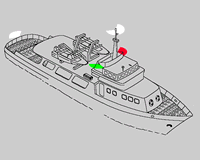 | Maschinenfahrzeug in Fahrt; ab 50 m Länge ist das 2. Topplicht vorgeschrieben | ![]() |