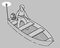 Bei ausgebrachtem Fanggerät, das waagerecht mehr als 150 Meter ins Wasser reicht, muss ein weißes Rundumlicht – bei Tag ein Kegel mit Spitze nach oben – in Richtung des Fanggeräts geführt werden. |