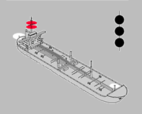 [30a] Ein Schiff vor Anker setzt zwei weiße Rundumlichter, eines nahe dem Bug und eines nahe dem Heck und unter dem vorderen Licht. Am Tag setzt das Schiff einen schwarzen Ball. Schiffe, die länger als 100 m sind, müssen zusätzlich Decklichter eingeschaltet haben. |