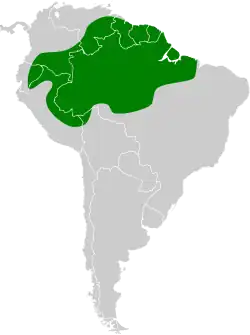 Die Art kommt in Bolivien, Brasilien, Ecuador, Französisch-Guayana, Guyana, Kolumbien, Peru, Suriname und Venezuela vor.
