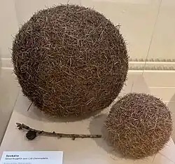 Die Lärchen sind nicht immergrün und werfen ihre Nadeln im Herbst ab. Die Nadeln der ufernahen Bäume fallen in den Silsersee oder werden dorthin geweht. Hat nun eine Welle einen kleinen Haufen treibender Nadeln erfasst und mit sich fortgerissen, so kann die wirbelnde Wasserbewegung die Nadeln am Grunde drehen und so zur Kugel formen. Je nach der Grösse des losgerissenen Stückes Nadelmaterials variiert die Grösse des daraus entstehenden Balles.